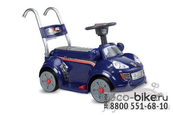• Отличная модель личного электротранспорта для малышей в возрасте от 1,5года. Представленный электромобиль является многофункциональным и может служить каталкой и ходунками. Ручка – съемная. Для удобства родителей и безопасности ребенка предусмотрено наличие пульта дистанционного управления. Максимальная нагрузка на конструкцию – 15 кг. Обозначенный предел превышать нельзя, так как в этом случае безопасность использования игрушки снижается.